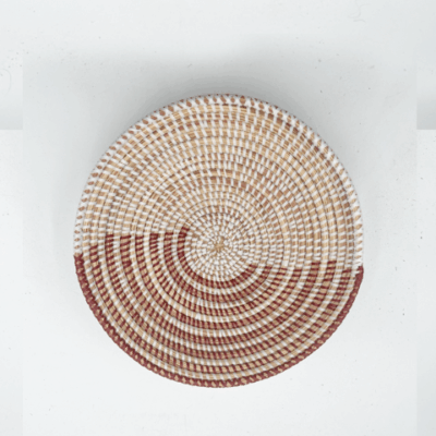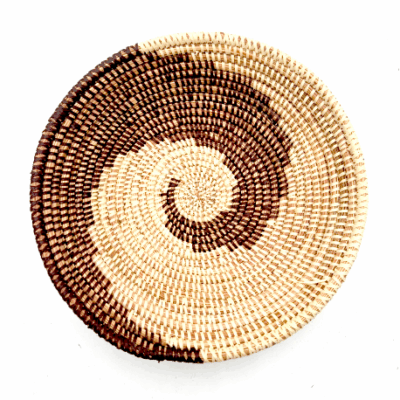 Handwoven African Tabletop Bowl – 4×12 Beige/Brown Spiral