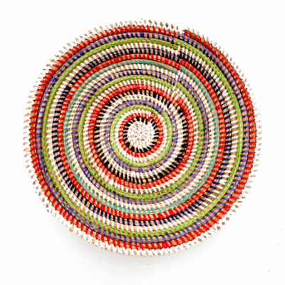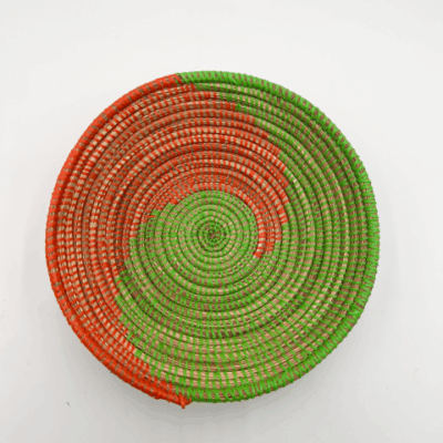 Handwoven African Tabletop Bowl 4×12 – Orange Green Spiral