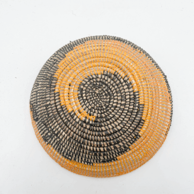 Handwoven African Tabletop Bowl 4×12 – Black Yellow Spiral