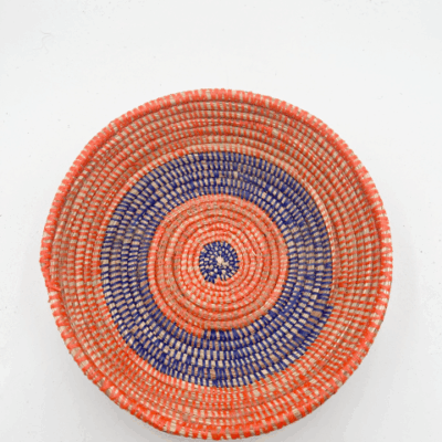 Handwoven African Tabletop Bowl 4×12 – Orange Blue Stripe