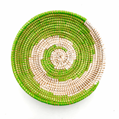 Handwoven African Tabletop Bowl – 4×12 Olive Green/White Spiral