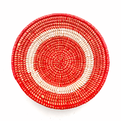 Handwoven African Tabletop Bowl – 4×12 Red/White Half Stripes